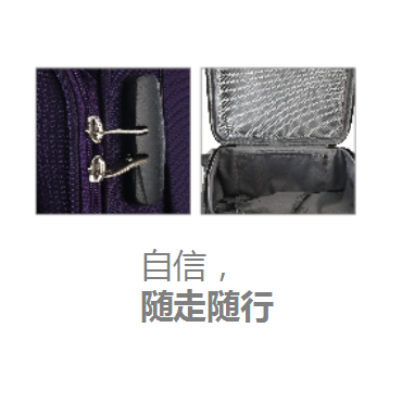 尺寸:390×550×260 mm 材质:外部:织物 内部:织物 装箱数 :1pcs/箱 产品描述: · 轻便、简约的设计风格 · 精选细腻尼龙材质,坚固而耐损 · 大容量空间,舒适软把手,彰显独特气质 · 固定密码锁 · 四轮旋转滑轮,操控自如