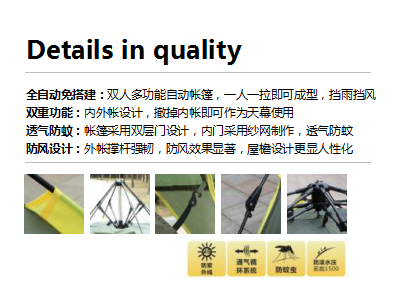 产品尺寸:200*160*120cm 材质:外帐蓬和底为210牛津布、帐身190T涤纶