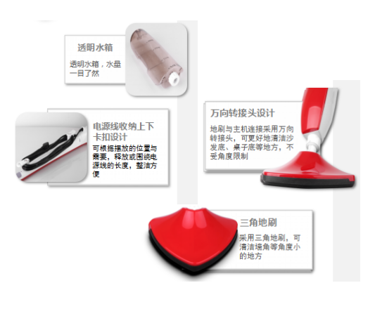 产品参数: 800W 产品尺寸:39×11×125cm 产品描述: 1.高温抑菌:清洁时产生的95°C高温蒸汽,能有效杀死接触面上的细菌、螨虫、微生物和病原体,让家中的地板、沙发等更清洁健康,放心小孩的坐、躺、滚、爬 2.去除顽固污渍:高温蒸汽,能对顽固污渍进行高温溶解,配合软毛刷或纤维抹布即可轻松去污 3.蒸汽烘干功能:特有的蒸汽烘干设计,能使清洁后的表面快速干燥洁净,保护和延长家具的使用寿命 4.拒绝化学清洁剂,环保健康