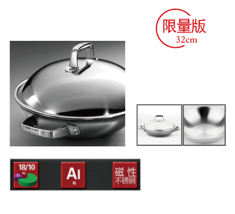 尺寸:内直径:32cm;内高度:7cm;外高度:19cm 产品描述: SIGMA Clad 钢铝钢三层通体压制技术,传热迅速又均匀,热量能更快的从锅底传导至锅沿,整个锅具的表面都可以用于煎炒烹调。 不锈钢空心浇铸手柄,防烫效果好。 密闭锅盖,锁住水汽,实现健康烹饪。 锅壁清晰标注刻度,可按需添加食物,便捷易用。 可用于各种炉灶,包括电磁炉,洗碗机和烤箱适用。