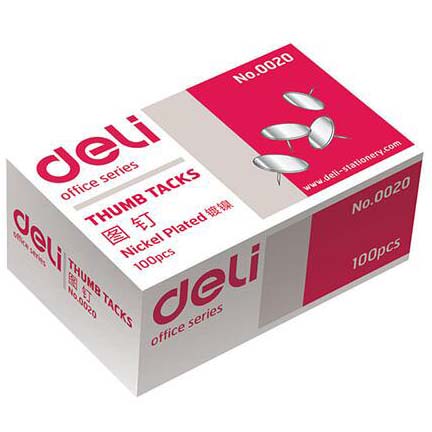 100粒/盒,10盒/包; 图钉均经加厚电镀处理,符合国家标准,经久不锈; 全封闭盒身,有效防止漏针。