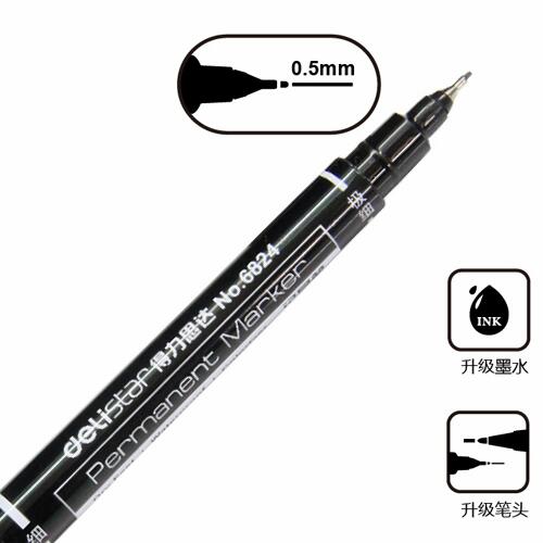 0.5-1.0mm,黑色,12支/盒; 油性墨水,快干防水不褪色; 可书写在不同物质表面,适用于金属,光盘,菲林,纸箱,布,木材,石材,塑料,纸质等一般物品表面 3.墨水低碳环保安全
